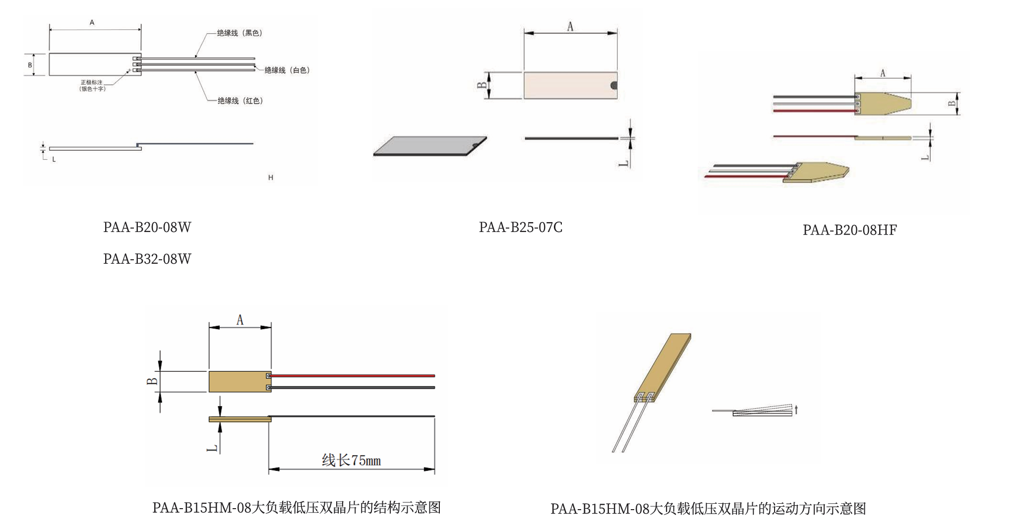 根据双晶片的应用场景,可与不同的结构件进行组配以满足应用需求。我们可以为您在性能参数和结构形状上提供产品定制。