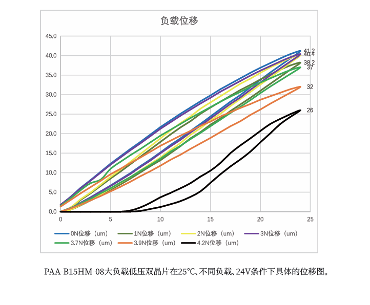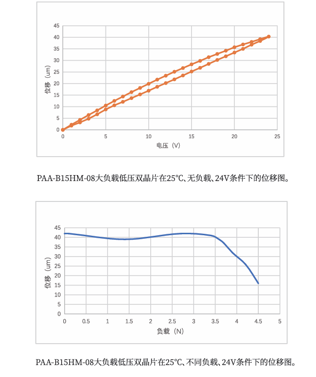 *位移测试:驱动电压0~150V、公差±15%;